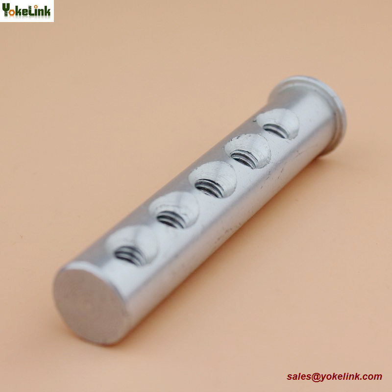 Adjustable Clevis pins or Universal Clevis Pins are one of the components of a three-piece clevis fastener system and are used as a quick and secure fastener. This simple combination provides a reliable connection for combining mechanical components and similar applications. Use a clevis pin as part of a clevis fastener to hitch equipment for towing and other uses. these pins have holes on 1/4" centers so you can change the length by moving the cotter pin (sold separately). The excess pin length can be cut off after installation. Zinc-plated steel pins have good strength and some corrosion resistance. Universal Clevis Pin, Cylinder pin, Adjustable Clevis pin can be reused in a variety of applications in agricultural and other industrial applications .