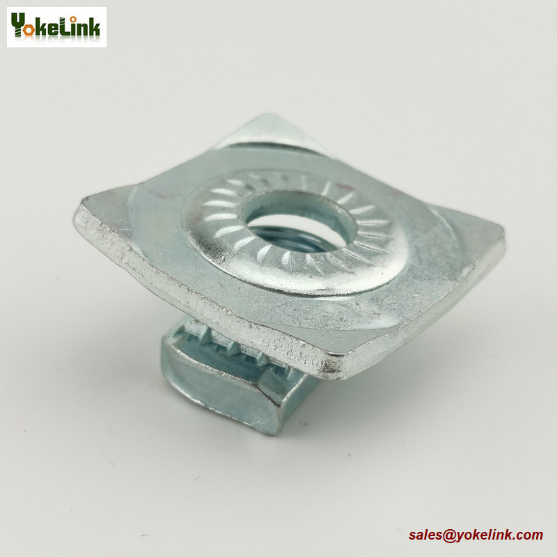 Las tuercas de canal de resorte se utilizan con sistemas de soporte de canal. Las ranuras a lo largo de los bordes actúan como pequeños dientes que pueden fijarse al canal cuando se aprietan.Los sistemas de canal están diseñados para múltiples aplicaciones, incluido el soporte de sistemas de contención y soportes de tuberías para todo tipo de instalaciones eléctricas y mecánicas, y son una parte clave para garantizar que toda la infraestructura se mantenga unida.