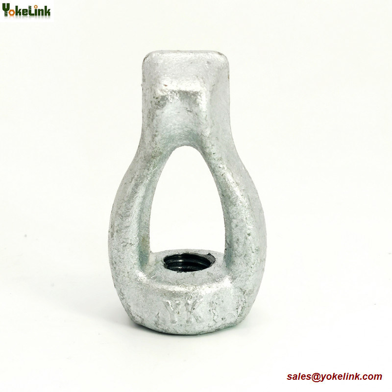Yokelink Thumb Eye Nut hecha de acero forjado por goteo, fabricada de acuerdo con ANSI/IEEE Std C135.80El acabado galvanizado en caliente para cumplirEspecificación ASTM A153.