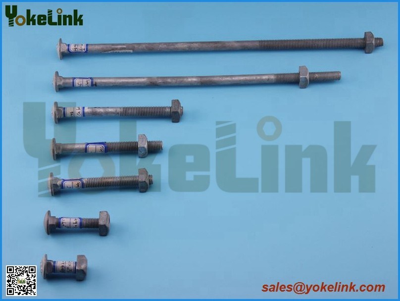 Hot Dip Galvanized Carriage bolts for attaching hardware to crossarms. Standard carriage bolt head with square nut. Rolled thread assure uniformity and strength. Manufactured from ANSI standards. Hot Dip Galvanized to meet ASTM Specification A153 Class C and D. |
